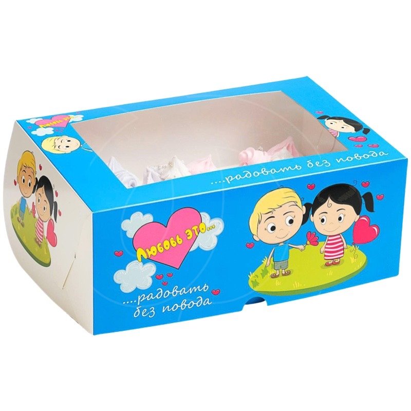 Доставка Коробка на 6 капкейков с окном "Любовь это…" голубой 25x17x10 см из магазина в вашем городе: