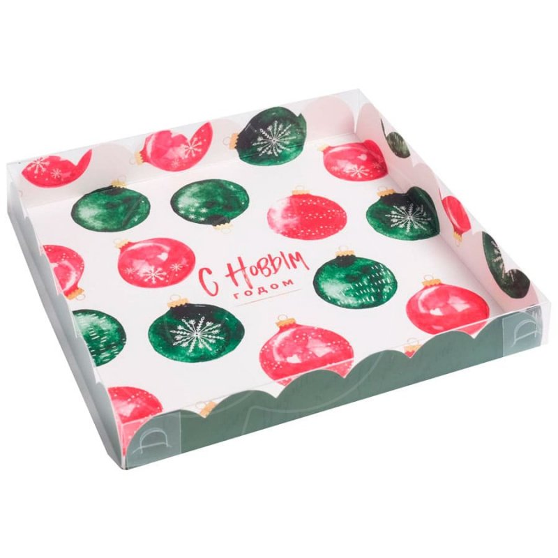 Доставка Коробка для сладостей с прозрачной крышкой "Ёлочные игрушки" 21х21х3 см из магазина в вашем городе:
