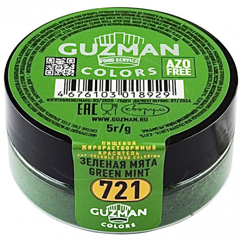 Доставка Краситель пищевой сухой жирорастворимый GUZMAN 721 Зелёная мята 5 г из магазина в вашем городе: